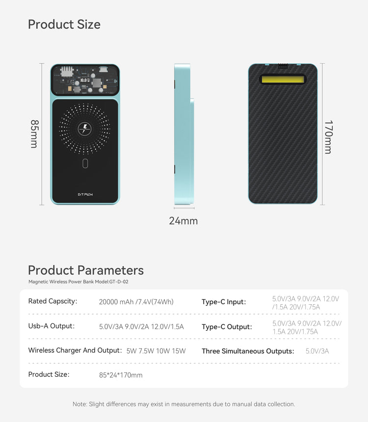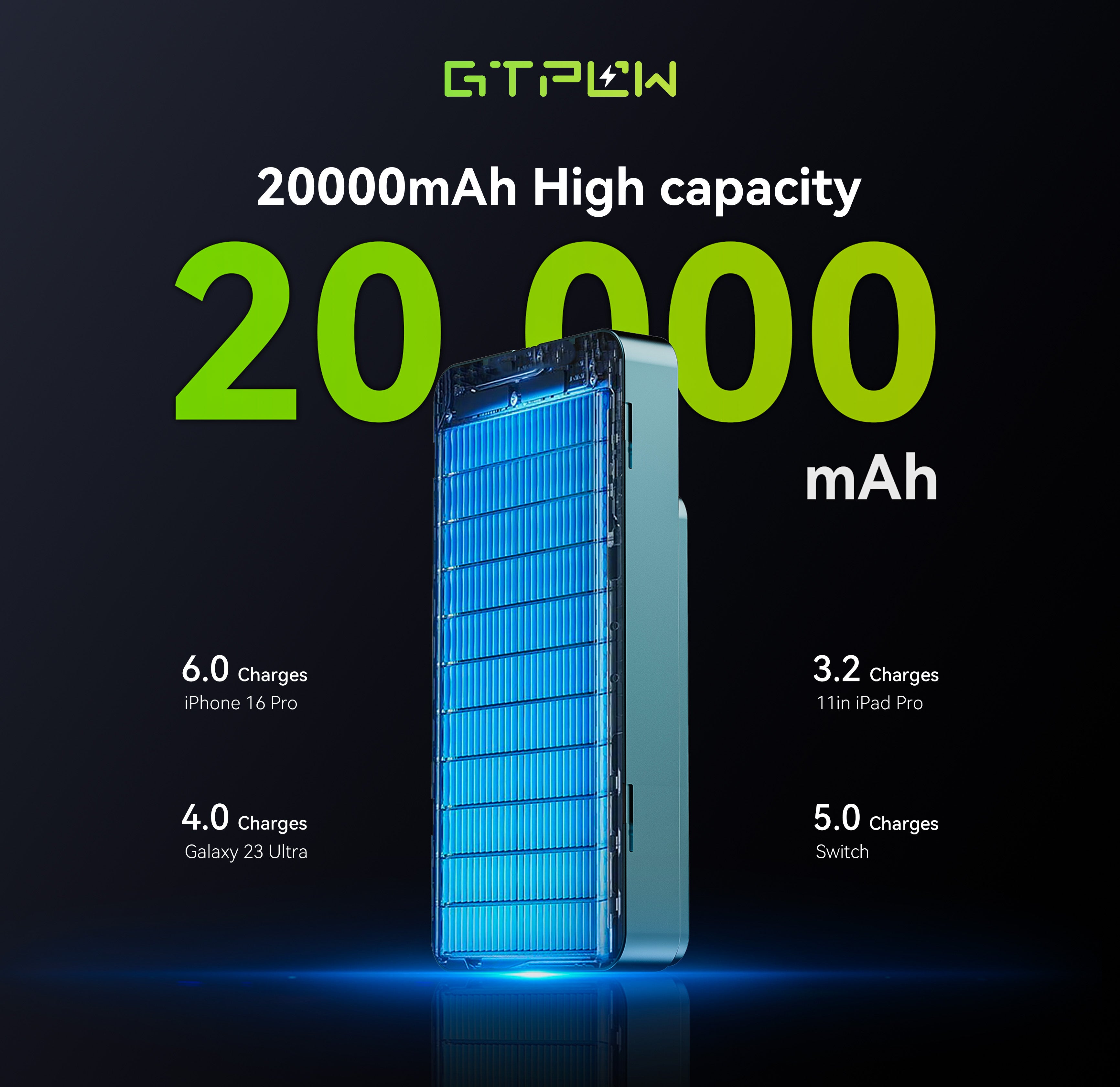 GTPOW 20000mAh Portable Power Bank – Fast Charging, Solar-Compatible, Multi-Output