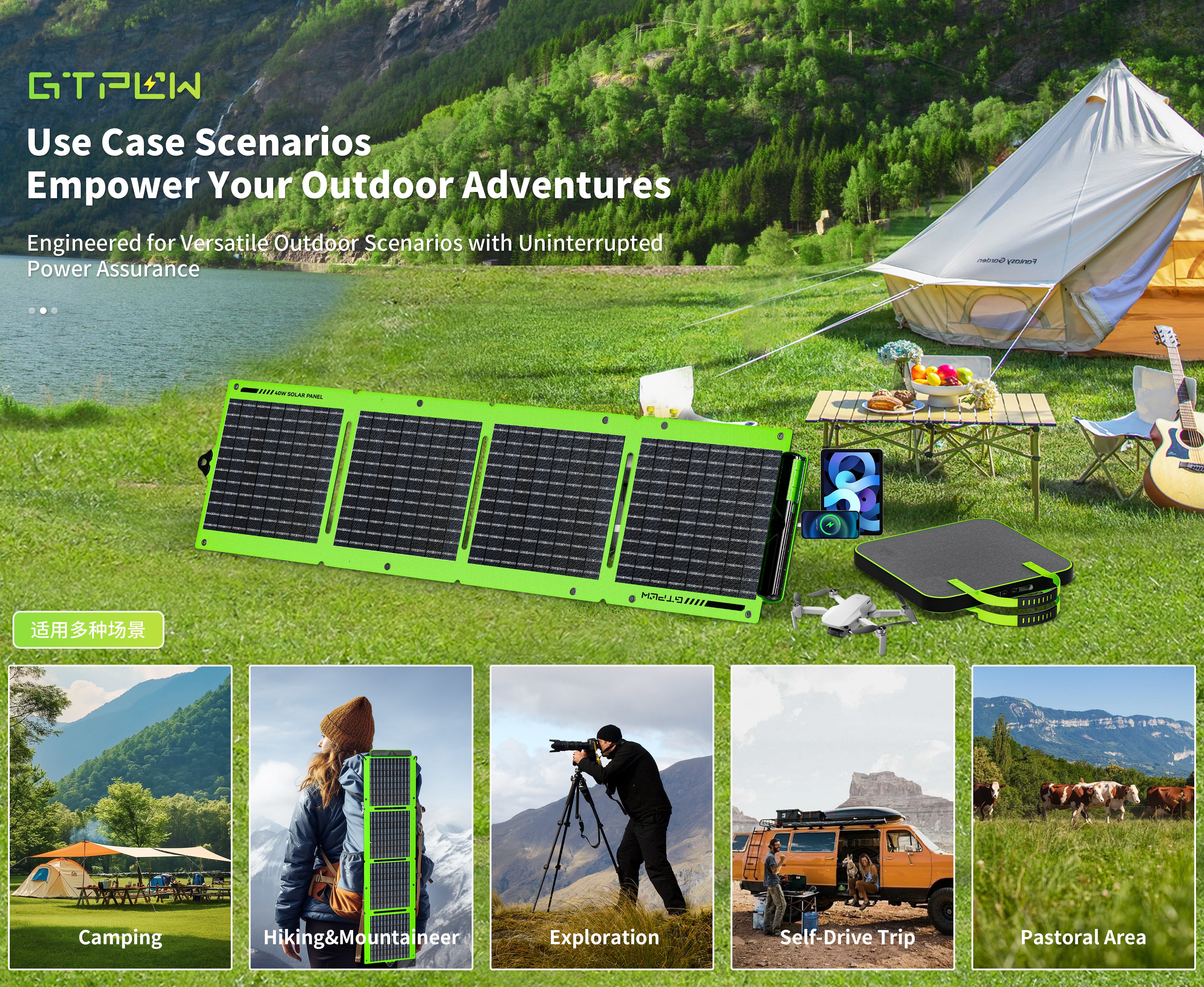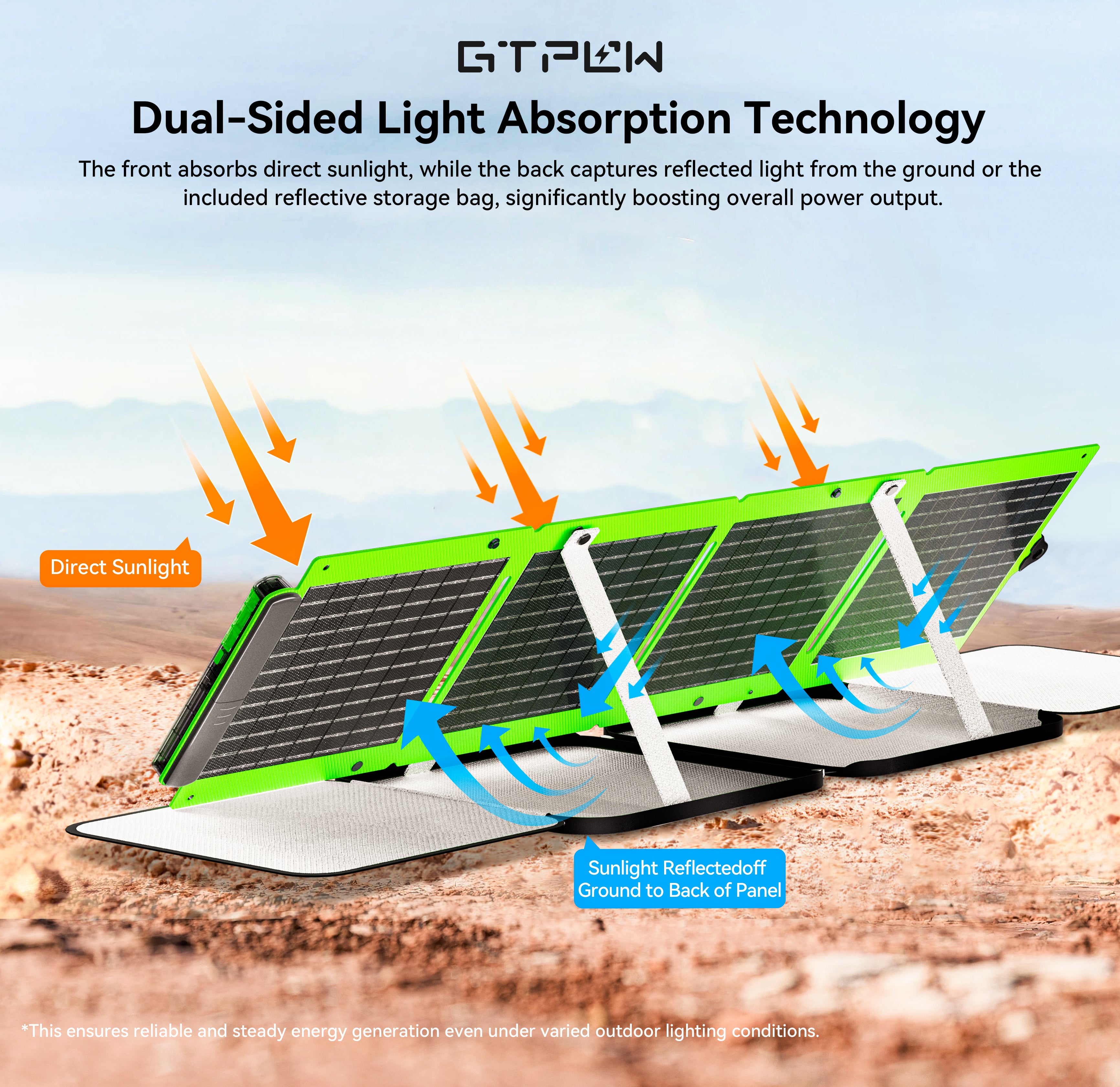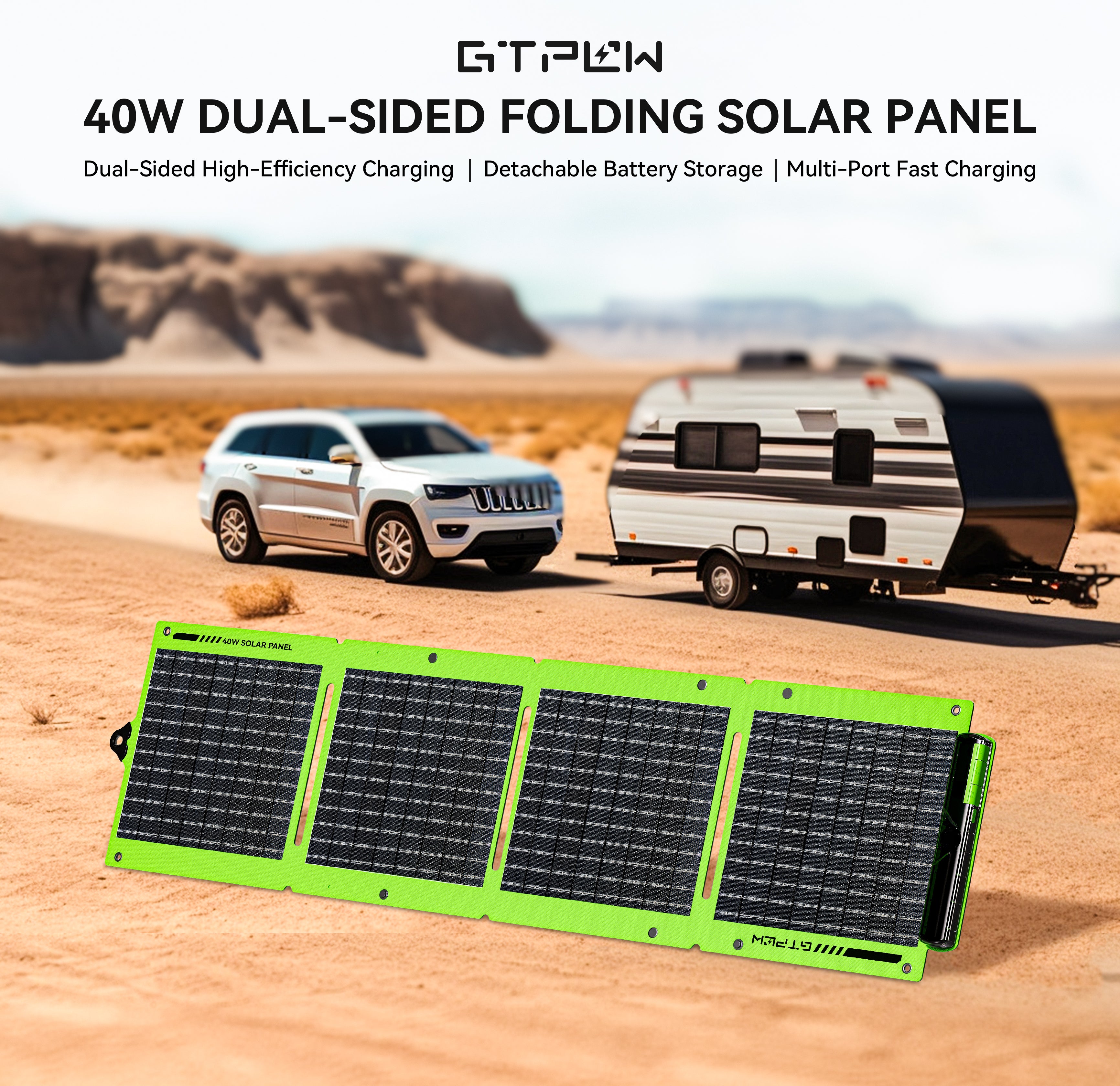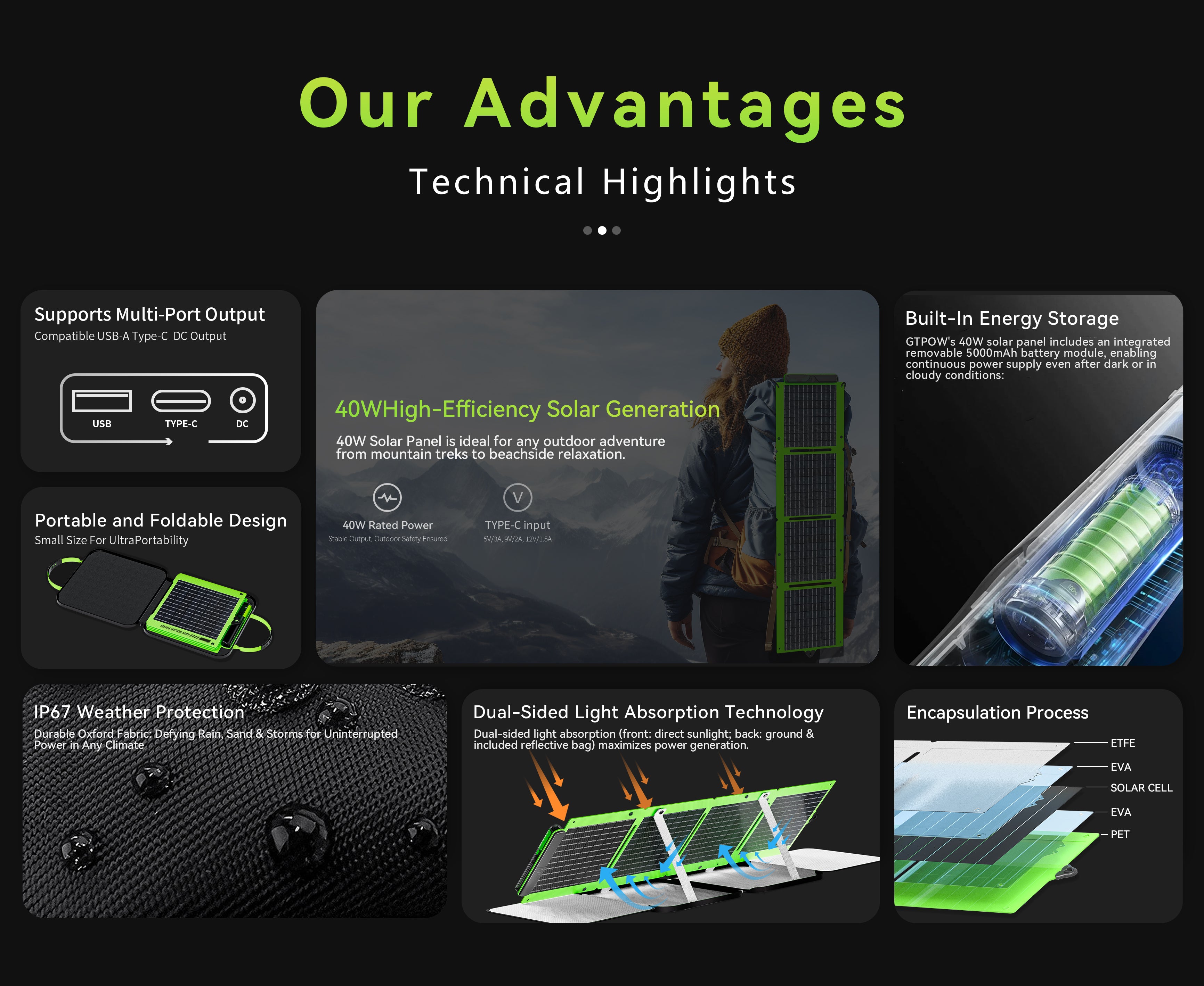 A foldable dual-sided 40W solar panel engineered for outdoor enthusiasts, travelers, and emergency power backup — portable, powerful, and versatile.