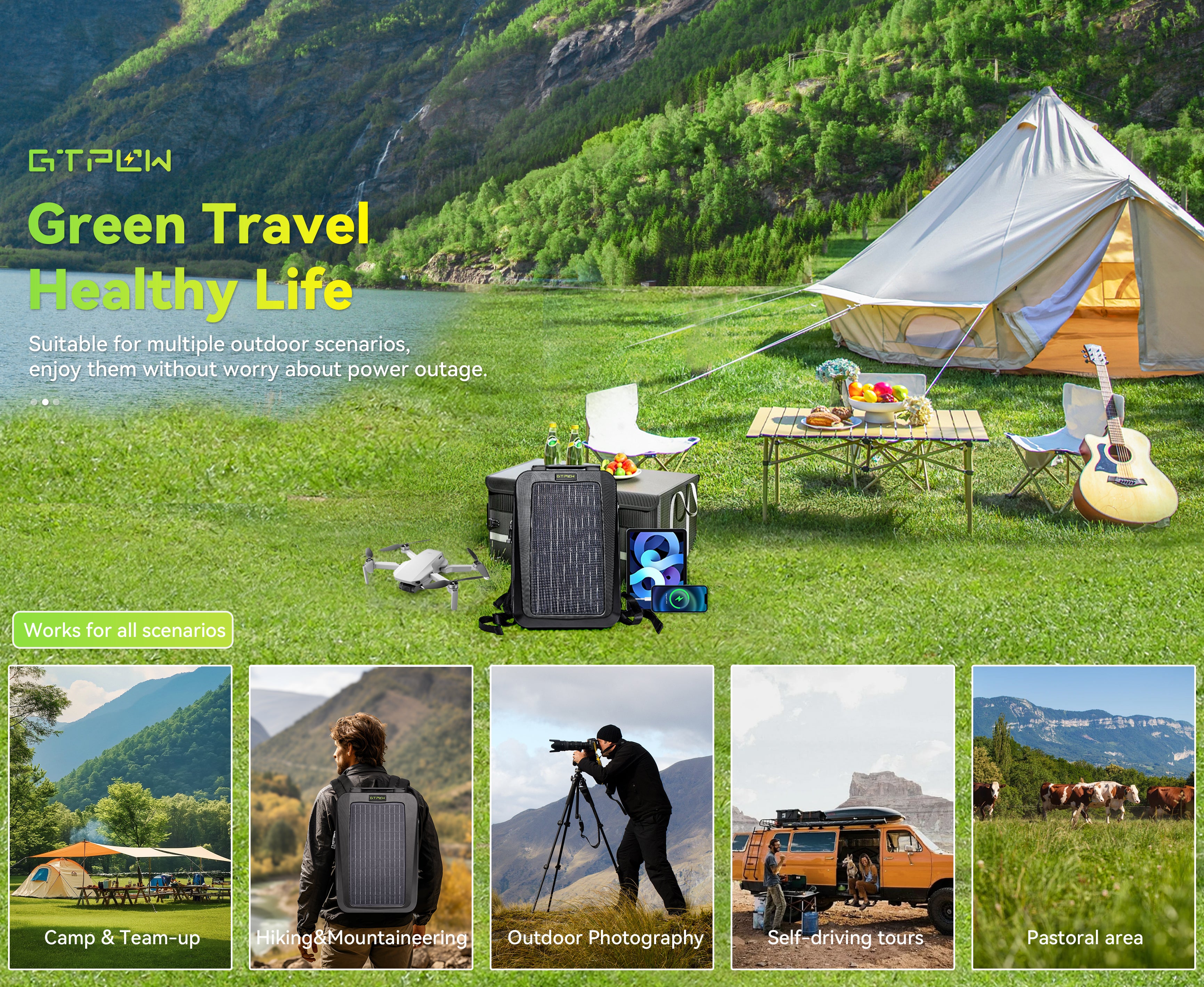 Absolutely! This backpack is designed for outdoor use, whether you’re hiking, camping, biking, or traveling. Its lightweight design and solar charging capabilities make it perfect for outdoor adventures